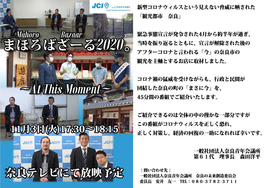 奈良テレビ放送にて「まほろばざーる2020。~At This Moment~」を放映します。