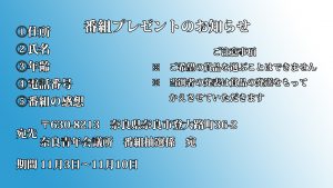 奈良テレビ放送にて「まほろばざーる2020。~At This Moment~」プレゼント応募フォームになります。上記の記載の通り応募のほどよろしくお願いします。