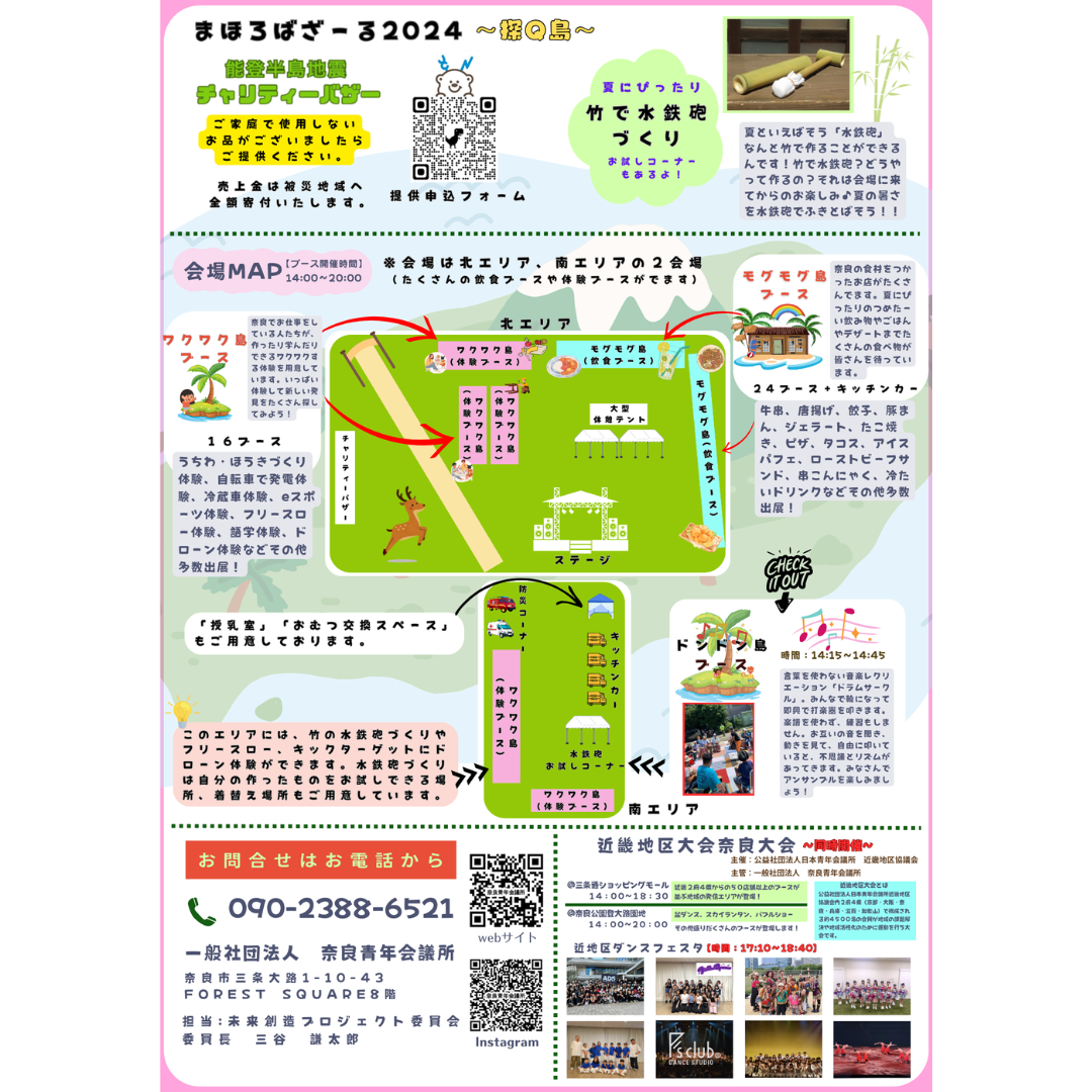 【事業告知】まほろばざーる2024〜探Q島〜 2024.06.19 いよいよ開催が来月に迫ってきました、まほろばざーる2024〜探Q島〜の告知です♪ 当日はたくさんのブースやイベントをご用意しています! 大人も子供も楽しめる事業になっているので、お気軽にお越しください!