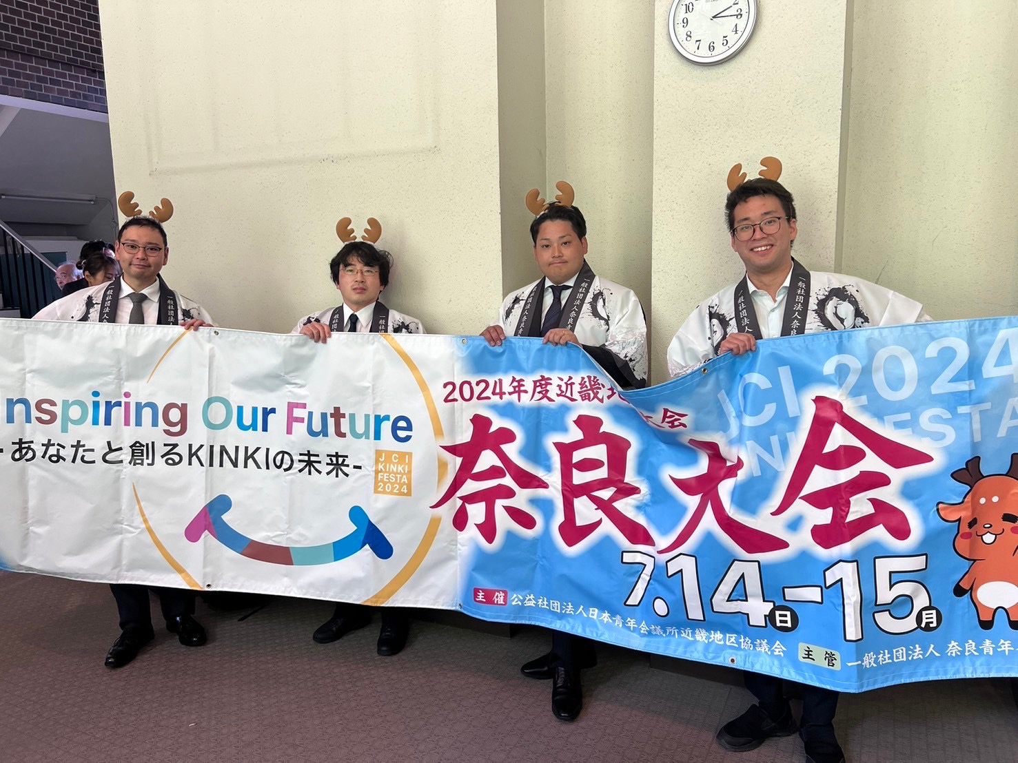 近畿地区大会PR in 京都ブロック協議会 2024.06.29 6月29日 この日は地区大会PRで 京都ブロック協議会 に訪問しました! 7月14日〜15日は近畿地区大会奈良大会 大会日程の覚え方は7(奈良)14(いいよ) 7(奈良)15(行こ)!! 奈良JCホームページには、地区大会の特設ページがあります! 青年会議所関係者の皆さまはLOMナイトの開催にもお役立ていただけるかと思います! 皆様のお越しを一同心よりお待ちしております! 「いまシカない!やるシカない! 近畿地区大会奈良大会へ 行くシカない‼️」