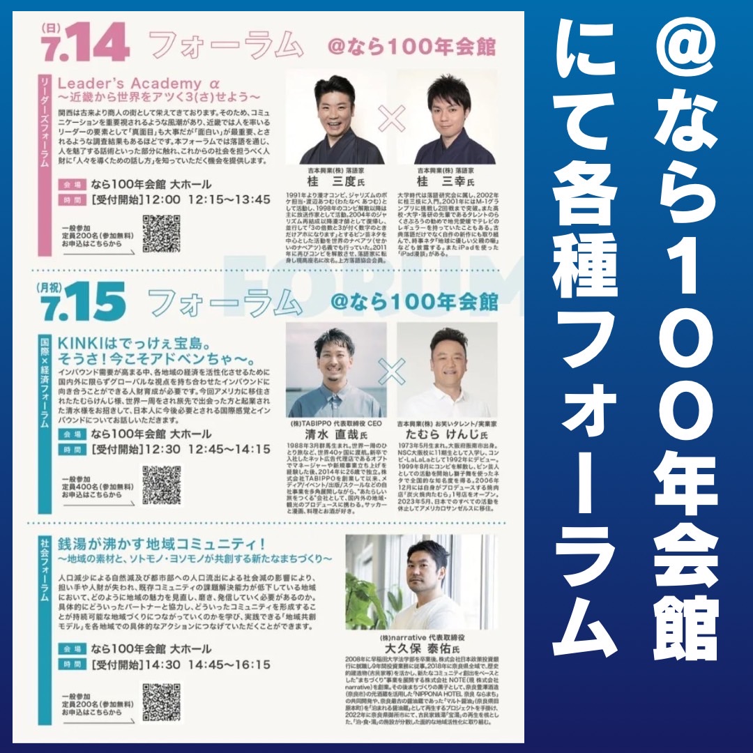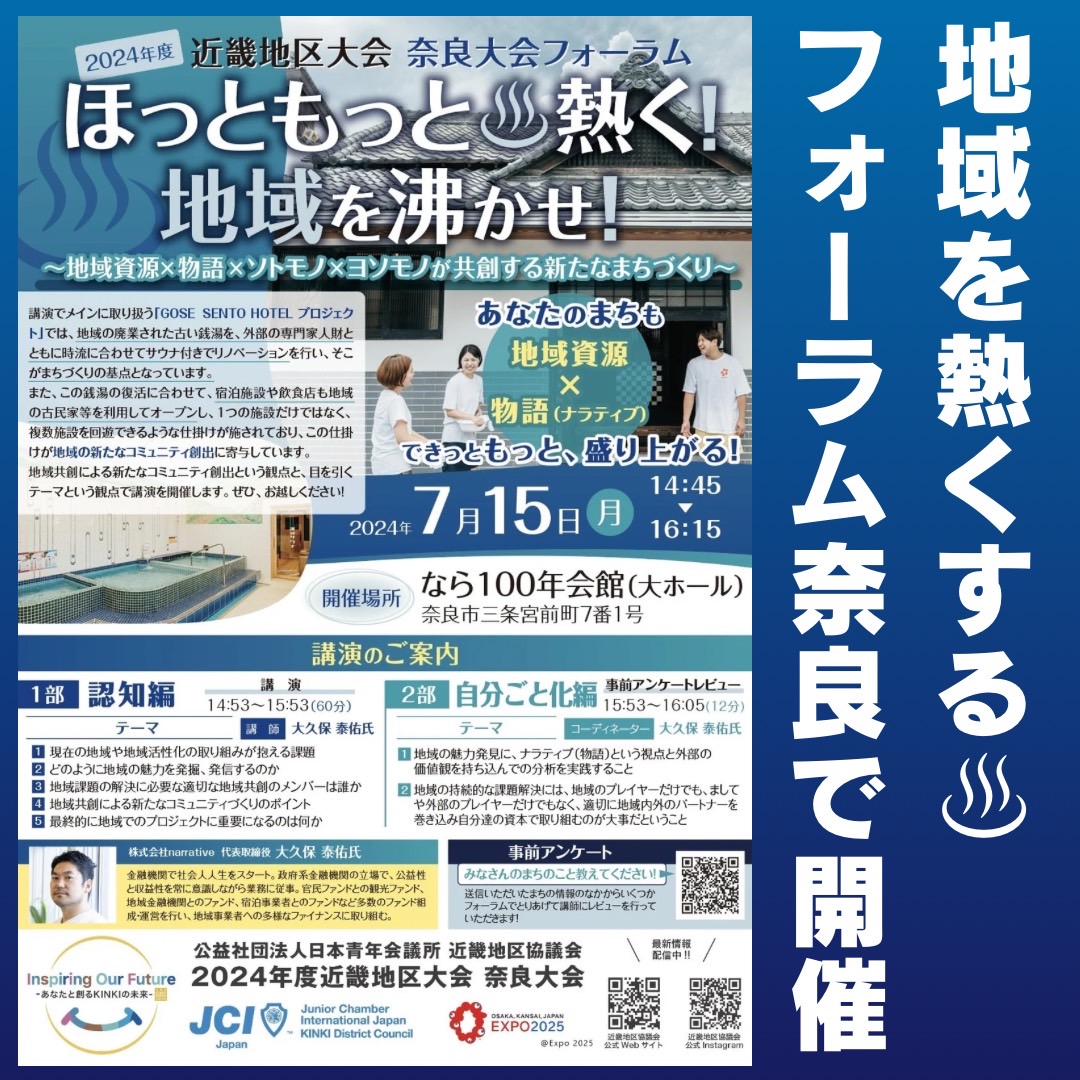 7/15(月)なら100年会館にて、2024年度近畿地区大会奈良大会フォーラムを開催します