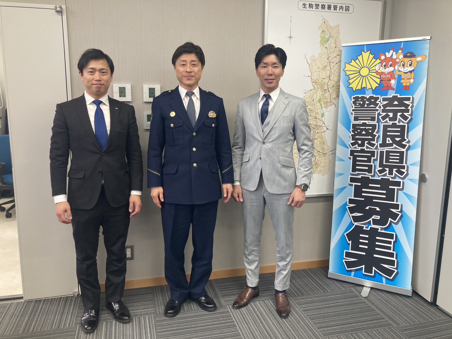 また奈良県生駒警察署長 中西輝彦様にご挨拶に伺い、生駒警察署および奈良JCそれぞれの事業において、今後、互いに協力し合う機会があるかと存じますが、引き続き良好な協力関係を継続させていただければとの想いをお伝えしました。
